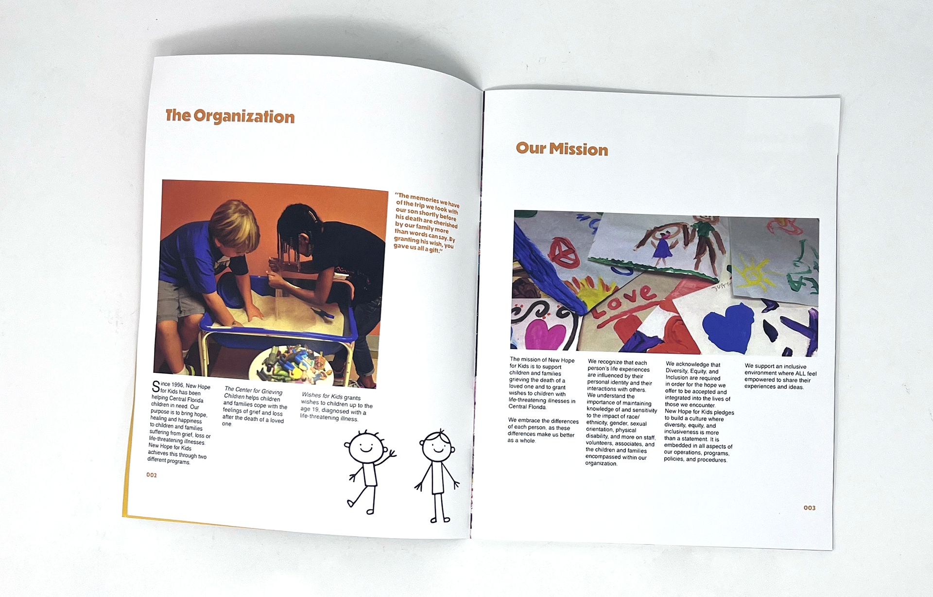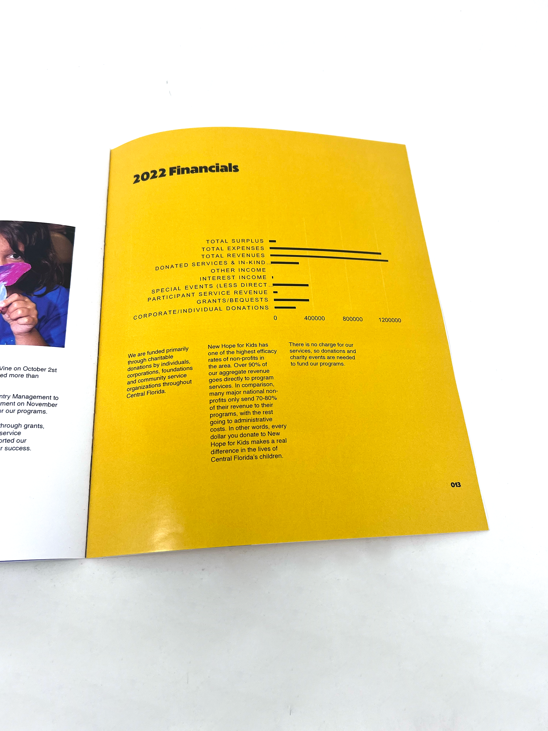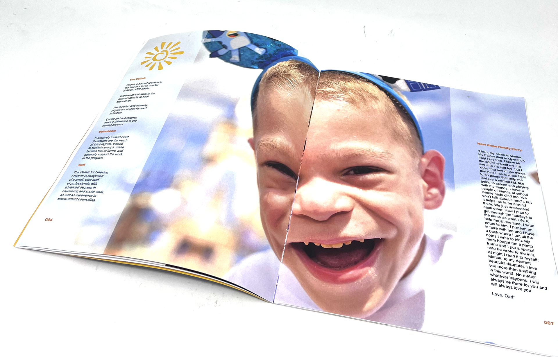 New Hope For Kids is a non-profit organization dedicated to helping grieving children and their families by giving them support in dealing with their loss. With their annual report, the goals were to share the organization's message, making it clear that their impact within the community is strong, and to tell a story throughout the report. Given how hard NHFK works to bring a smile to the children they work with, I themed the report around bringing that positivity, hence, Bring The Light.